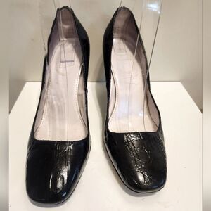 Emilio Pucci Black Patent Leather Croc Print Square Toe Pumps Sz.6.5/36.5 $595