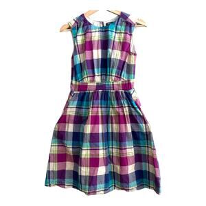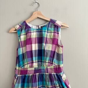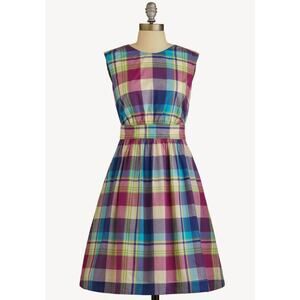 Emily And Fin Modcloth Cotton Sleeveless Plaid Retro Dress XS Extra Small Blue Purple
