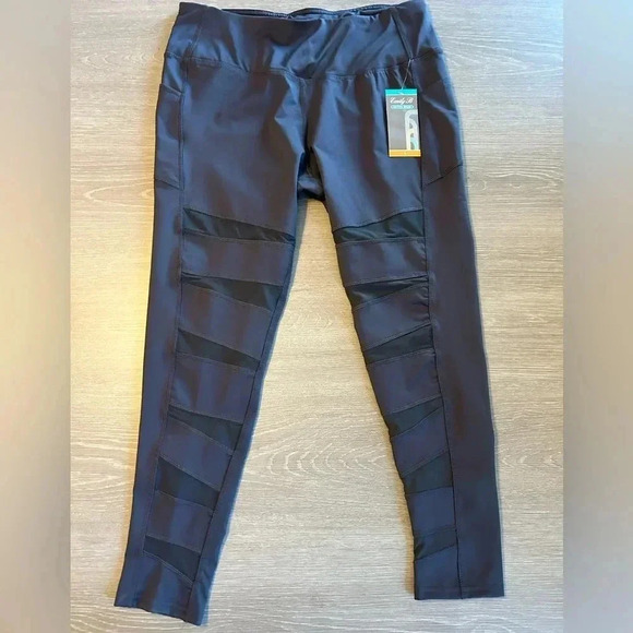 Emily B Activewear Women's Leggings Size Large Mesh Leg Panels Dark Blue New