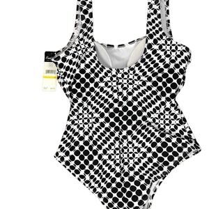 Emily B Women’s One-Piece Swimsuit – Size Small | Black & White Polka Dot