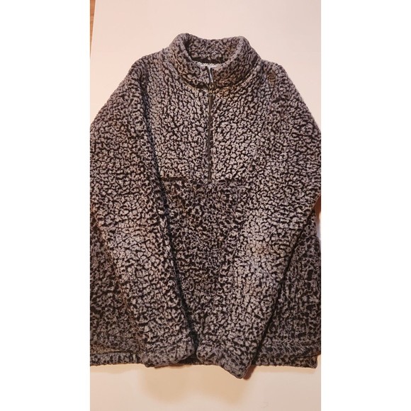 Emily B Womens SMALL Fleece Pullover Jacket Gray/ Ivory Sherpa 1/4 Zip Front