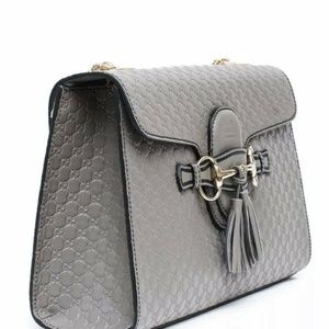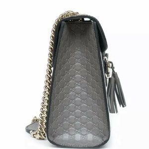 11.75" L x 7" H x 3" D, chain shoulder strap drop: 10"
