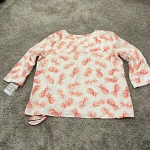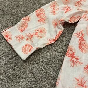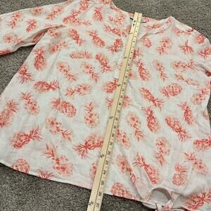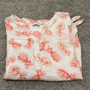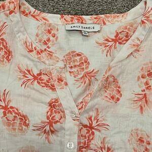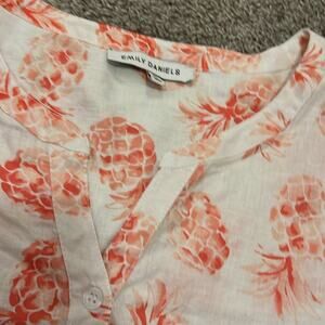 Emily Daniels Button Front pineapple side Tie blouse Top Size XL Linen Blend NEW
