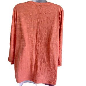 Emily Daniels Peach Colored Button Up Top 3/4 Sleeves 2 pockets Size Medium Approximate measurements laying flat, 21” pit to pit, 25.5" length, 19" sleeve length.