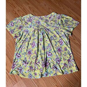 Emily Daniels Floral Button-Down Short Sleeve Tie-Front Top XL Rayon Yellow