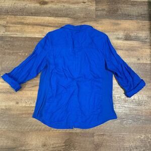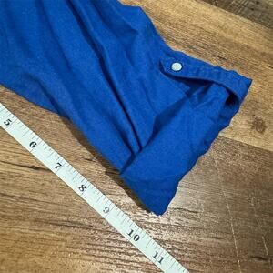 Emily Daniels Linen Blend Roll Tab Half Sleeve Button-Up Shirt Blue Large Pocket