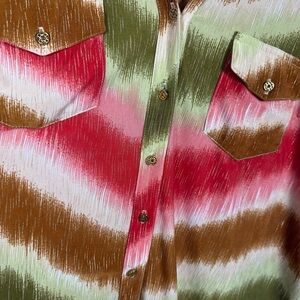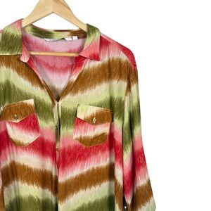 Emily Daniels Women’s Button Metallic Roll Tab Blouse Pink/Green/Brown Size XL