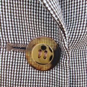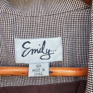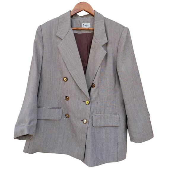 Emily Double Breasted Blazer in Brown. Size 16W. Features notch lapel collar, long sleeves, double-breasted button closure, and side flap pockets. Excellent pre-owned condition, no flaws.