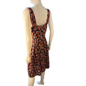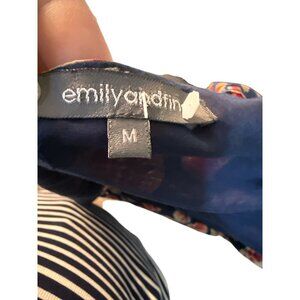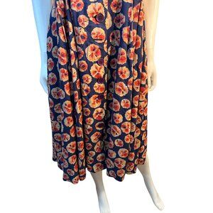 Emily & Fin Navy Floral Midi Dress With Sweetheart Neckline & Buttons Size M EUC