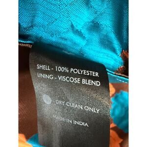 Emily Lovelace Dress Size 4/6 Teal With Rust Flowers Collared Preppy POCKETS!