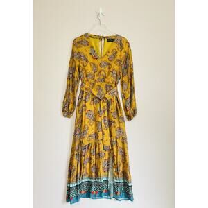 Emily Lovelock by Anthropologie Fiona Midi Dress in Gold Size Small