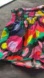 Vibrant shorts with a bold floral print. Features a mix of pink, red, green, yellow, and black colors. Sold as is.