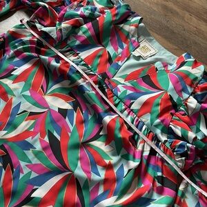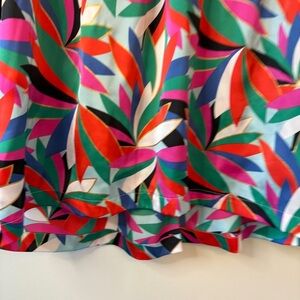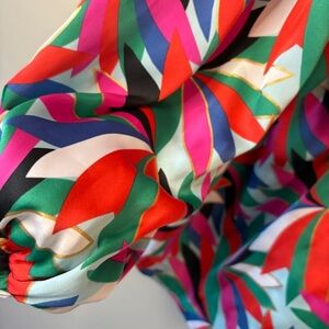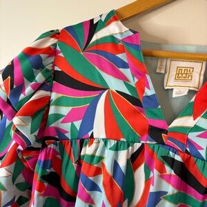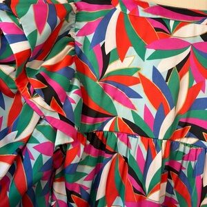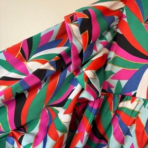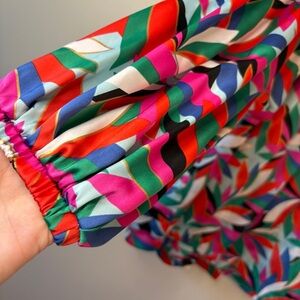Emily McCarthy Colorful Ruffled Shoulders Bib Collar Flowy Blouse women’s L