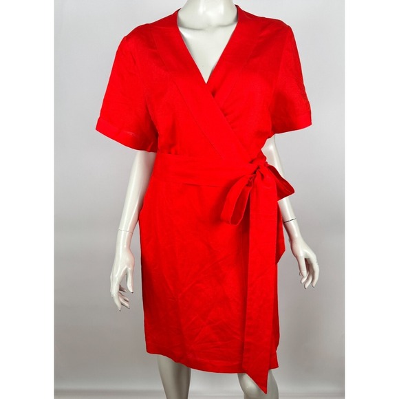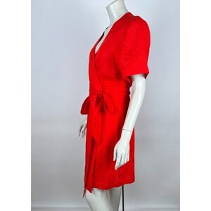Emily McCarthy Day Rob Linen Wrap Dress Women M NWT Short Sleeve Pockets Tie