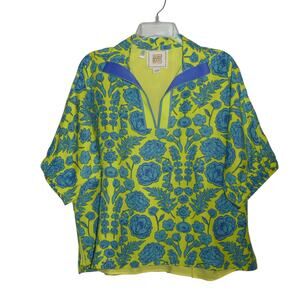 Emily McCarthy Poppy Top in Joy Bouquet Green Blue Floral Puff Sleeve Large