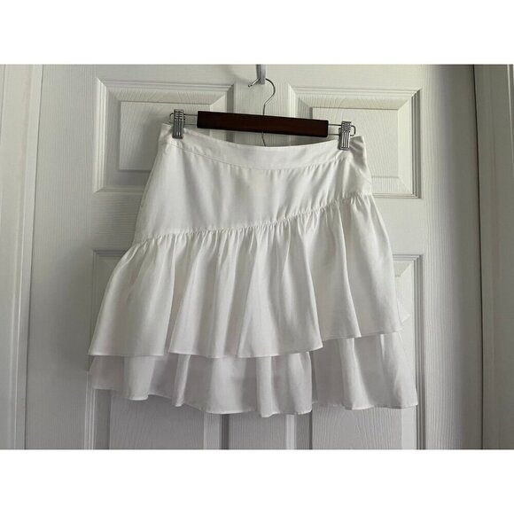 Emily McCarthy brand white tiered mini skirt, size XS. Like new condition other than one tiny spot on front that I didn’t notice until photographing- haven’t tried removing but looks like it’ll come out.