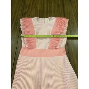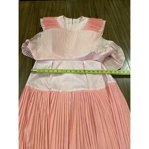 Emily Mccarthy Chloe Rose Petal Ruffle Pleated Short Sleeve Midi Dress S pink
