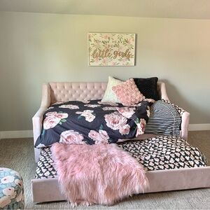 These sheets are in good used condition. No stains, no holes, just some fading from wash wear. This set includes a twin sized fitted sheet, flat sheet and standard pillowcase.