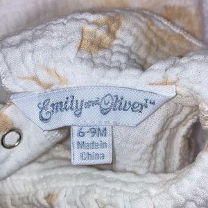 Emily & Oliver Muslin white with tan flowers ruffle cap sleeve sunsuit romper