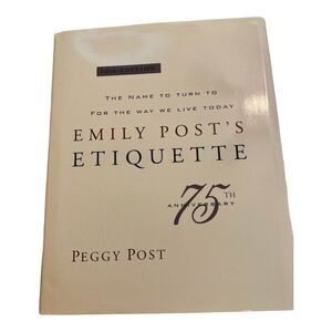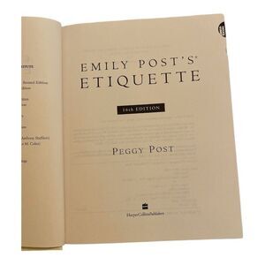 Discover the timeless wisdom of "Emily Post's Etiquette" by Peggy Post, a must-have guide for navigating modern social graces. This 16th Anniversary Revised Edition, published by HarperCollins, offers adults a comprehensive look into the art of etiquette, blending tradition with contemporary insights. Whether you're attending a formal event or hosting a casual gathering, this hardcover book provides invaluable advice to help you shine in any social setting. Pre-owned and well-loved, it's ready to continue its journey with you.