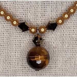 Emily Ray Sterling Silver 925 Tiger's Eye Pendant Crystal Beaded 15 Inch Necklace