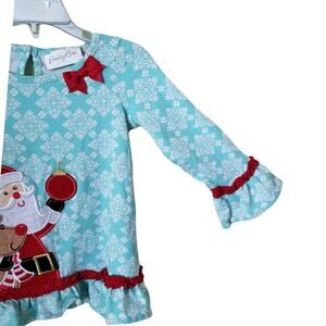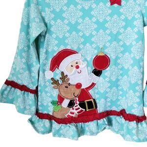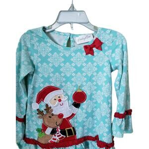 Emily Rose Girl's Mint Christmas Top With Santa and Rudolph Size 3T