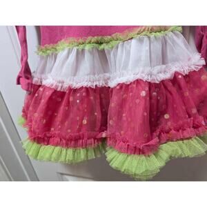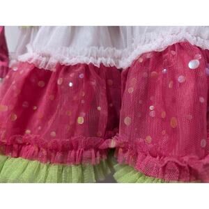 Emily Rose Girls Size 5 Christmas Dress Pink Green Candy Cane Embroidery Ruffled