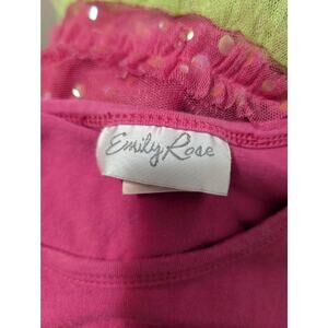 The Emily Rose Girls Size 5 Christmas Dress in pink and green with candy cane embroidery and ruffled accents is a festive and adorable choice for holiday parties. Made from a blend of polyester, spandex, and cotton, this knee-length A-line dress features long sleeves and a button closure for easy wear. The Christmas theme and vibrant colors make it perfect for winter and fall occasions, and the lined interior ensures comfort for little ones. Embrace the holiday cheer with this charming and stylish dress from the trusted brand Emily Rose.