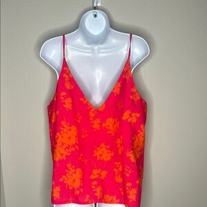 Embrace a relaxed summer vibe with this Emily Rose camisole, featuring a vibrant red and orange floral pattern. The spaghetti straps and flowing silhouette offer a comfortable and stylish fit, perfect for warm days. Crafted from a light, airy fabric, this top is a must-have for effortless elegance.