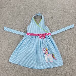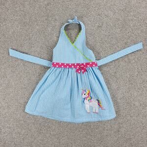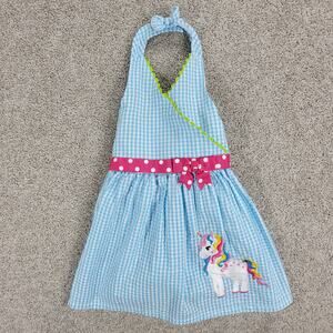 Emily Rose Unicorn Dress 18mo Blue Gingham Check Seersucker Halter Sundress