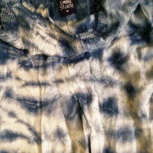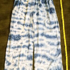 Emily Stacy Women's Casual Pants 100% Rayon Medium Beautiful Sky Blue with White
