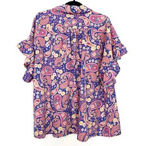Emily Wonder Purple Colorful Paisley Floral Button Down Shirt Ruffle 2X zq