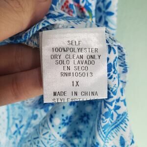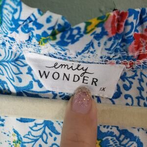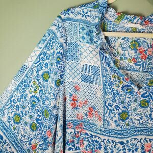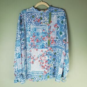 Emily Wonder Womens Blue Colorful Floral Patchwork V-Neck Blouse Top Size 1X