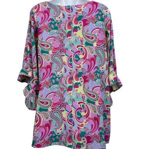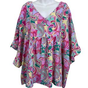 Emily Wonder Womens Paisly Dolman Sleeve Colorful Top Shirt V-Neck Blouse NWT 1X