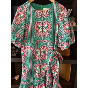 Emily Mccarthy Lola Green & Pink Mini Wrap Dress Size Medium $278 MSRP