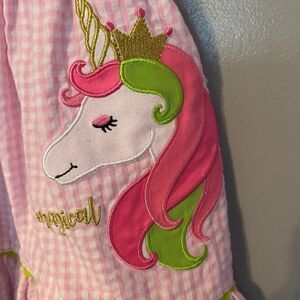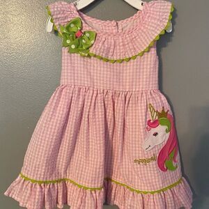 Emily rose little girls floral pink checkered unicorn dress good condition