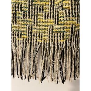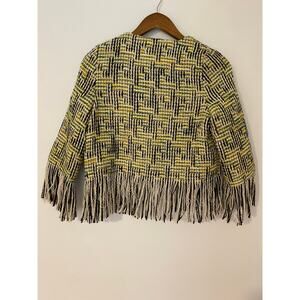 Emin and Paul Tweed Fringe Yellow Green Black Lady Jacket Wool Blend EUC Crop S