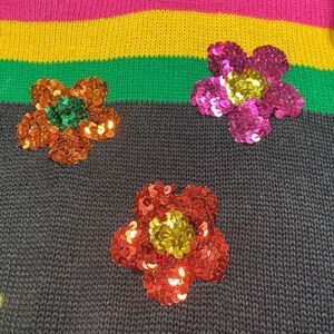 Eminent Women's Drop Shoulder Floral Sequin Knit Sweater Dress Tunic Multi L