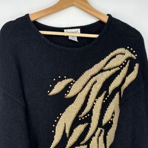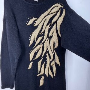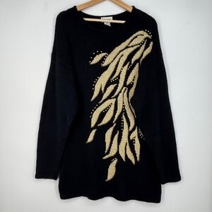Eminent Womens Medium Pullover Sweater Tunic Black Gold Metallic Silk Angora
