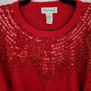 Eminent Womens VINTAGE Beaded Sequined Oversized Red Sweater Size Small