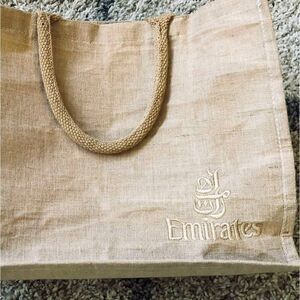 Emirates Airlines tan burlap textured reusable tote bag in excellent like new condition, clean nonsmoking home.