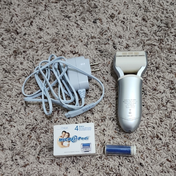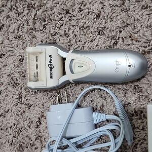 Achieve silky smooth feet with the Emjoi Callus Remover. Its elegant silver design and blue roller ensure effective callus removal for soft, beautiful feet. micro pedi
