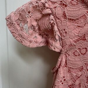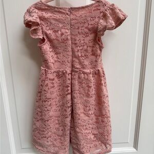 Emma & Elsa Girls Size 4 Pink Short Flutter Sleeve Lace Formal Dress
