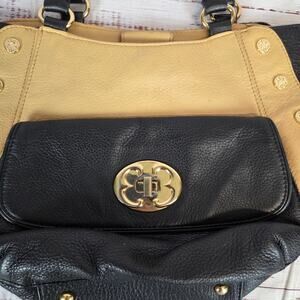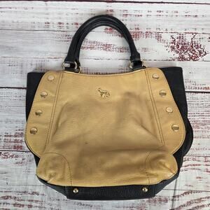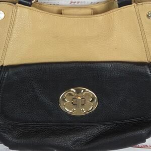 Emma Fox Black Tan Leather Top Dual Handle Satchel Purse Timeless Designer Bag