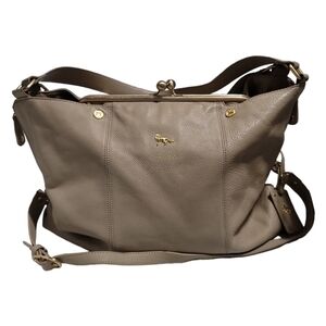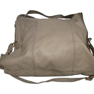 Emma Fox Dressage Kiss Lock Hobo Bag Cream Gold Hardware Lined. Huge bag! Perfect for a plane ride or traveling. Kiss Lock closure with gold hardware. Shoulder straps and a removable strap. Sides zip up or down for easier access.