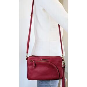 Emma Fox Leather Convertible Crossbody Bag Wristlet Cranberry Red Classics NEW