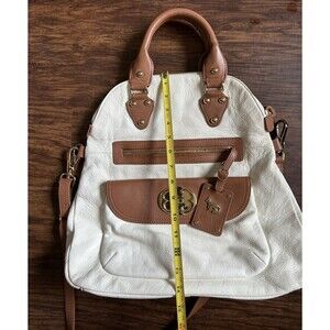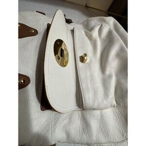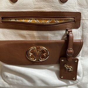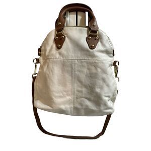 Emma Fox Lily Leather Ivory and Brown Leather Fold Over Crossbody Messenger Bag