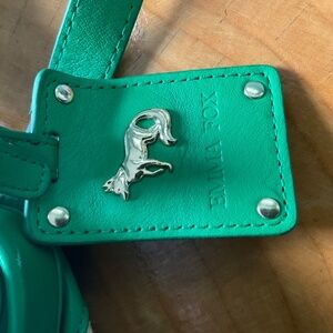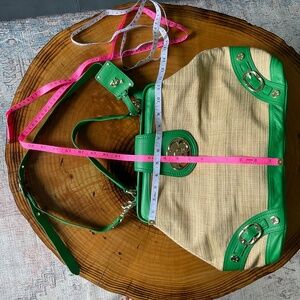 Emma Fox Newport Green Leather & Natural Woven Linen Blend Crossbody Satchel Bag