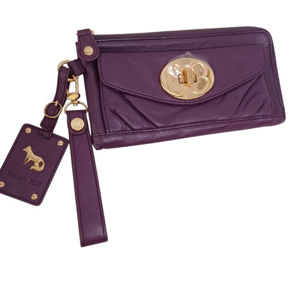 Emma Fox Wristlet Wallet Purple Leather Gold Tone Classic Zip Around