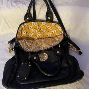 Emma Fox black leather fold over shoulder bag